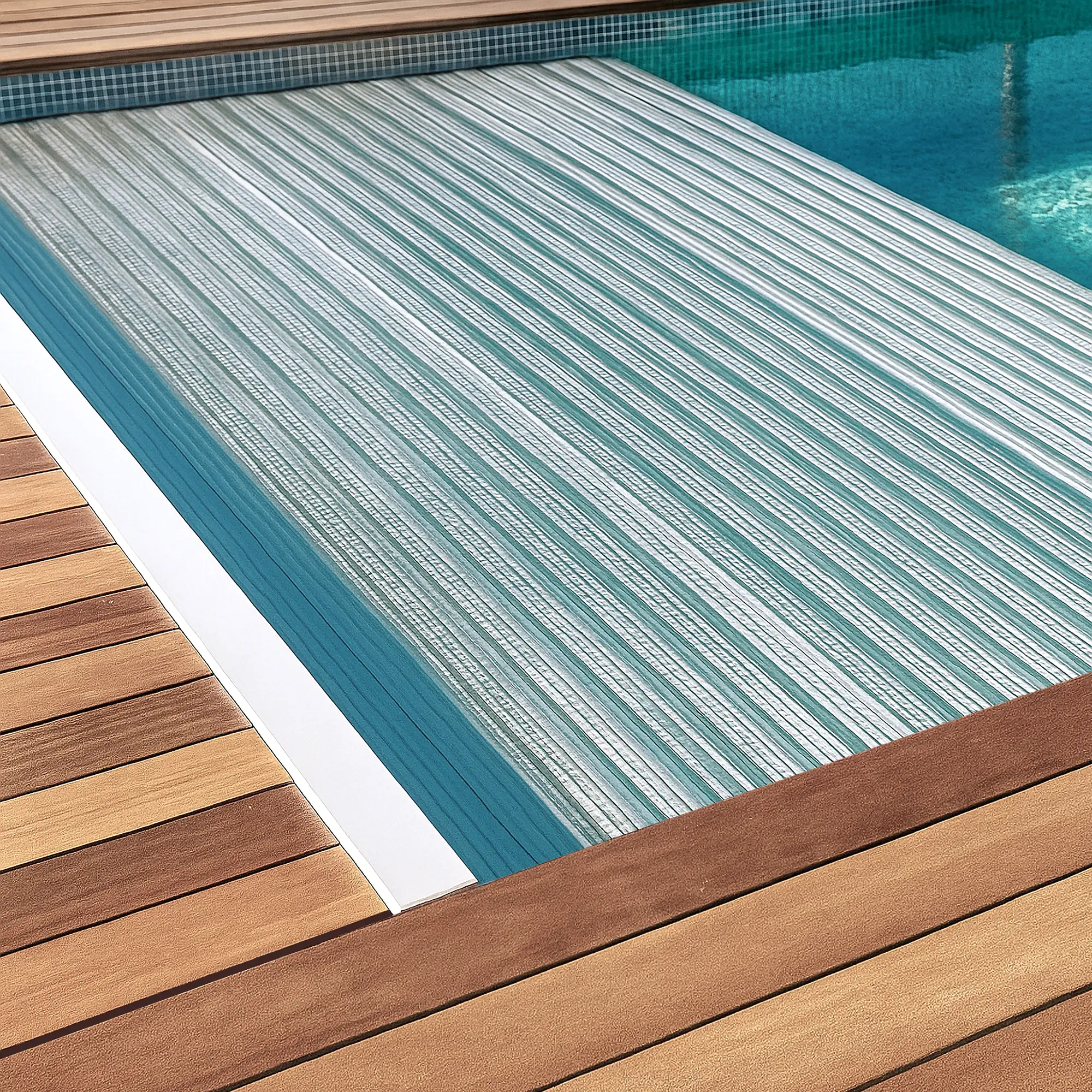 Lamellerna tillverkas i polykarbonat med hög slitstyrka och UV-skydd. Som tillval finns solarlameller som utnyttjar solens energi för att värma poolvattnet på ett naturligt och energieffektivt sätt.