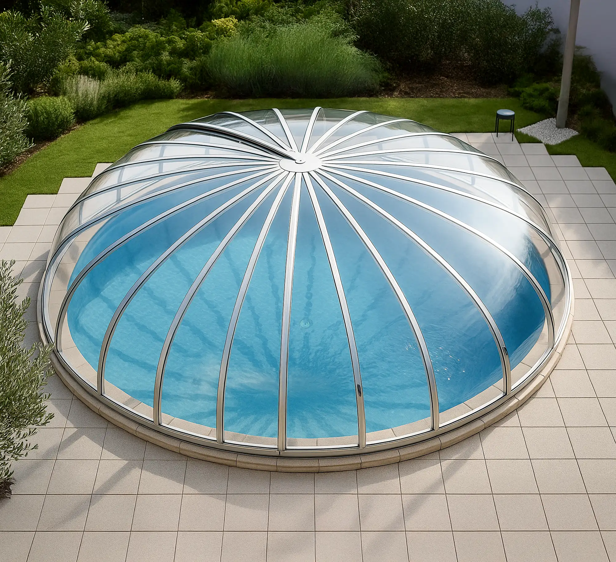 Med sin eleganta och rundade form skapar Pooltak Rund en exklusiv helhetskänsla där design, kvalitet och funktion möts. Resultatet är ett poolområde som bjuder in till badglädje och avkoppling under en förlängd säsong – en investering som förhöjer både komfort och upplevelse av din trädgård.